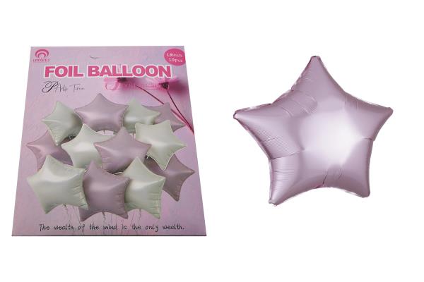 RYN Foil Balloon 18inch 10/Bag Pink And White Star 22.5*17cm
