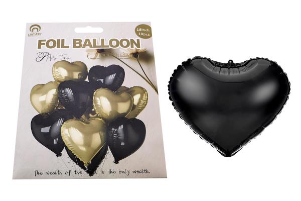 RYN Foil Balloon 18inch 10/Bag Gold/Black Heart 22.5*17cm