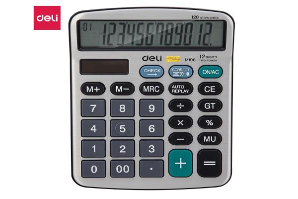 Deli Calculator Metal-12 digits 120 steps check Silver