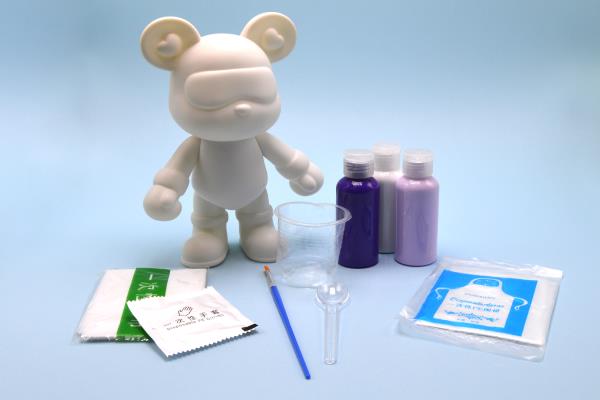 Plastic Bear 23cm With 3 Acrylic Colors Set 60ml with Brush Spoon Cup Apron Gloves Table Cover