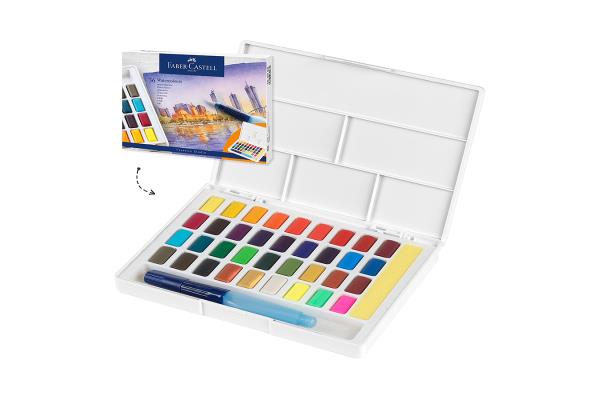 Faber Castell Solid Aquarelle Studio 36c With Sponge And Brush