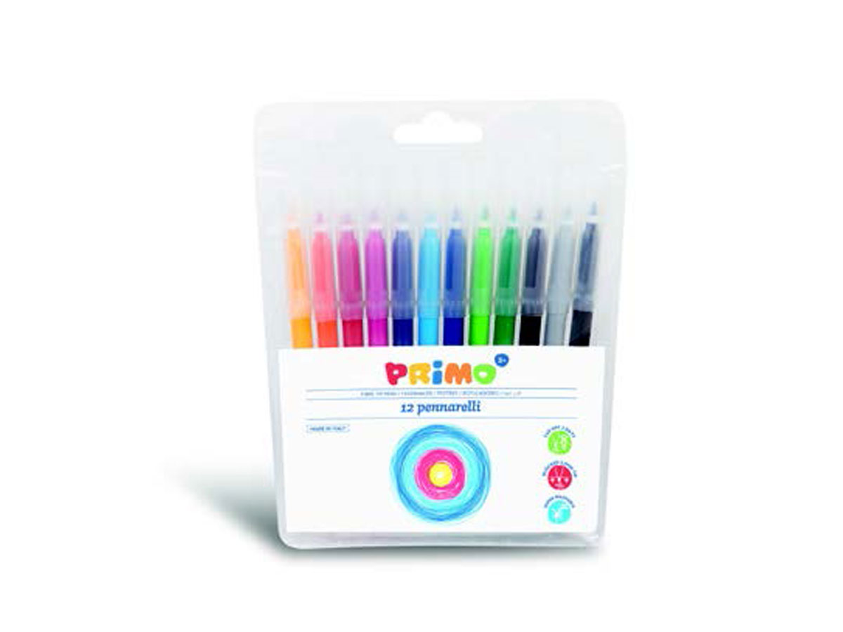 Primo Pennarelli Fiberpens 12 Colors In Plastic Blister