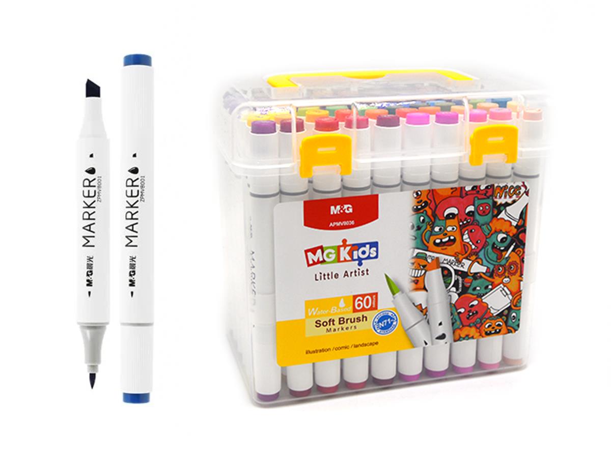M&G Double Head Marker Water Based Brush/Chisel 60 Colors V8036