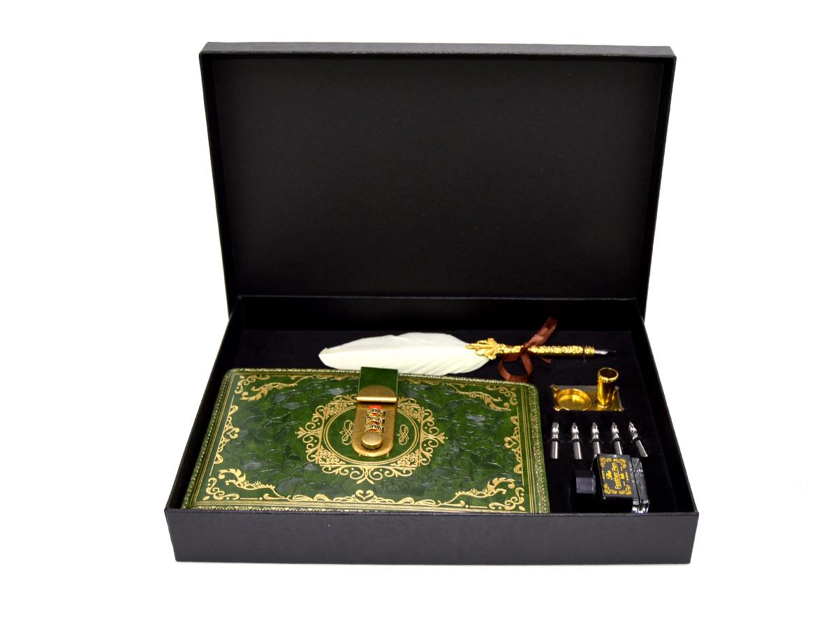 Quill Pen Set With Note Book And Feather Set Of 9 Pcs