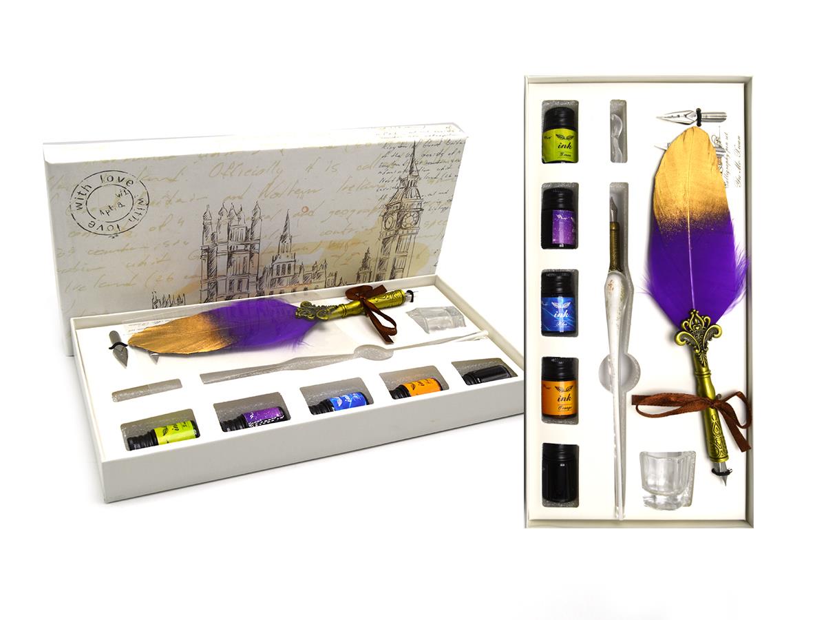 Quill Pen Set With Glass Paint And Feather Set Of 12 Pcs