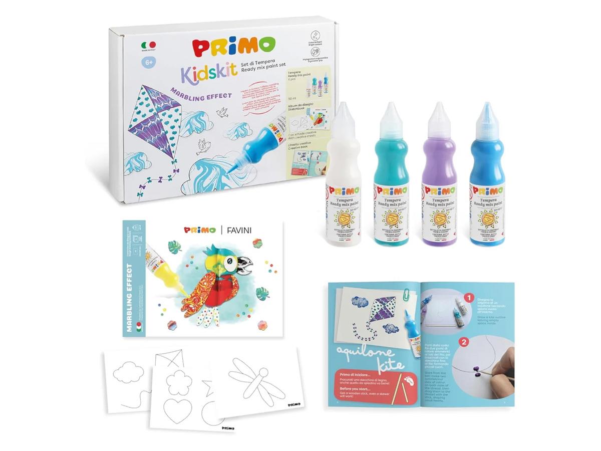 Primo Painting Kidskit Gouache Tempera 4 Bottles 50ml W/Sketchbook & Creative Book Marbling
