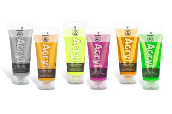 Primo Acrylic Paint Tube 75ml Fluorescent and Metallic Colors