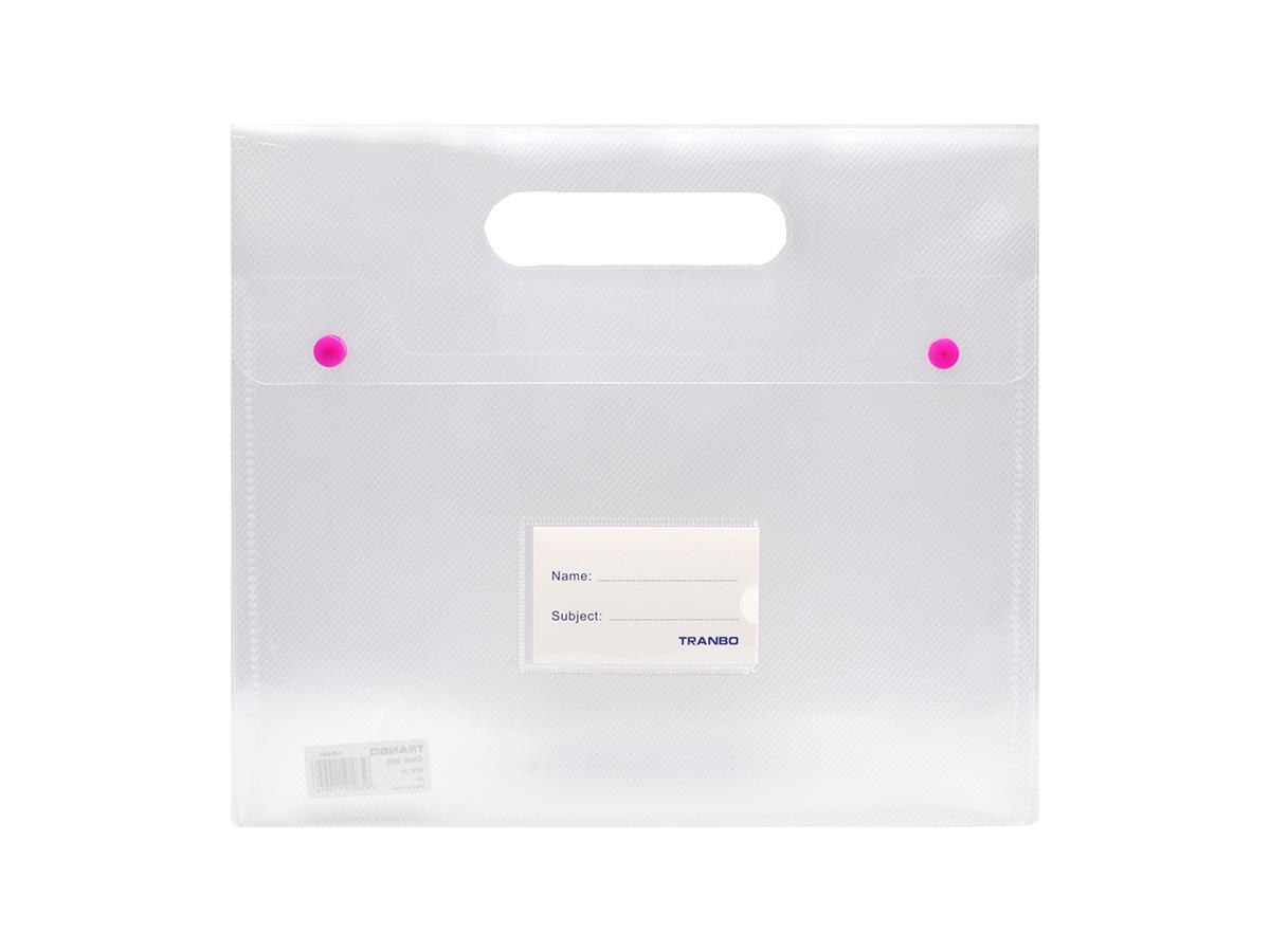 Tranbo Plastic File Bag A4 With Handel and 2 Buttons Horizontal Transparent