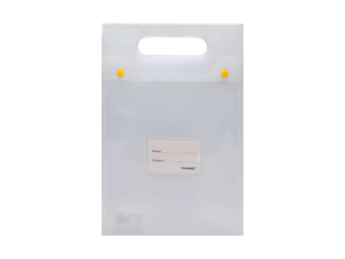 Tranbo Plastic File Bag A4 With Handel and 2 Buttons Vertical Transparent