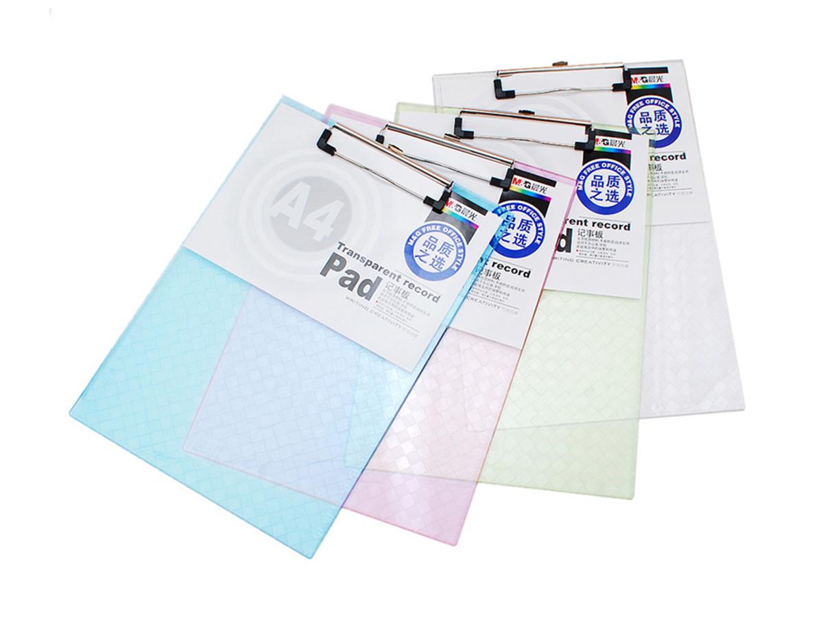 M&G Clip Board A4 Plastic Transparent Colored Pull Type