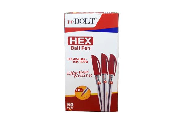 Rebolt Hex Ball Point Pen 1.0mm Red Box Of 50