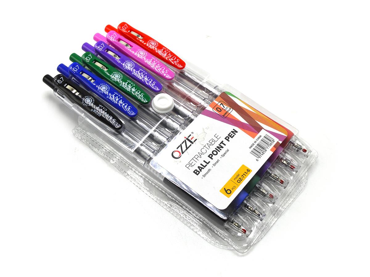 RYN Ozzie Retractable Ball Pen 0.7 Blister Of 6 Colors