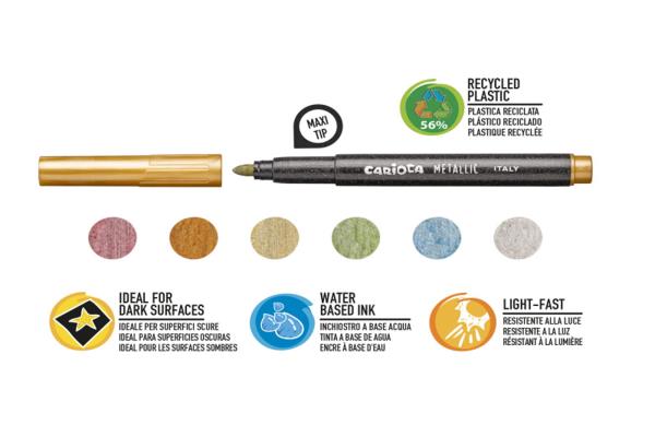 Carioca Metallic Fine Tip Markers Set Of 6