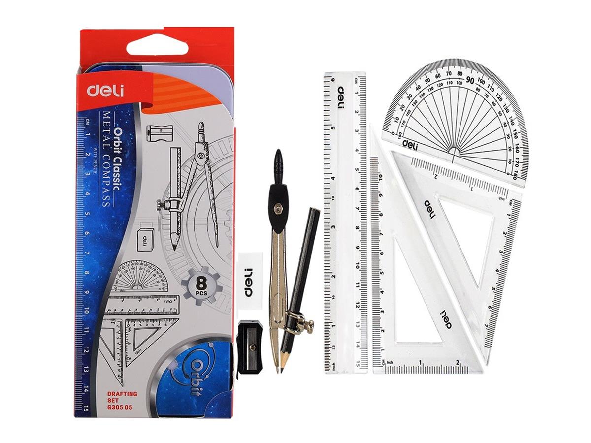 Deli Geometry Set In Metal Box 8pcs