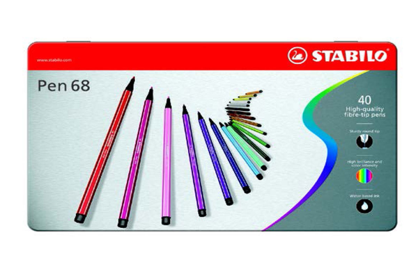 Fiber Tipped Pen 68 40Clrs In Metal Box