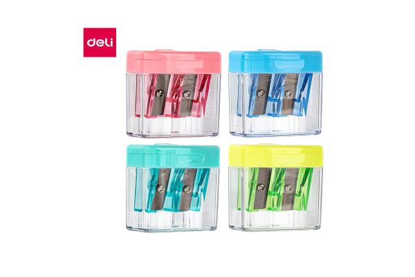 Deli Pencil Sharpener 2 Holes Assorted Colors