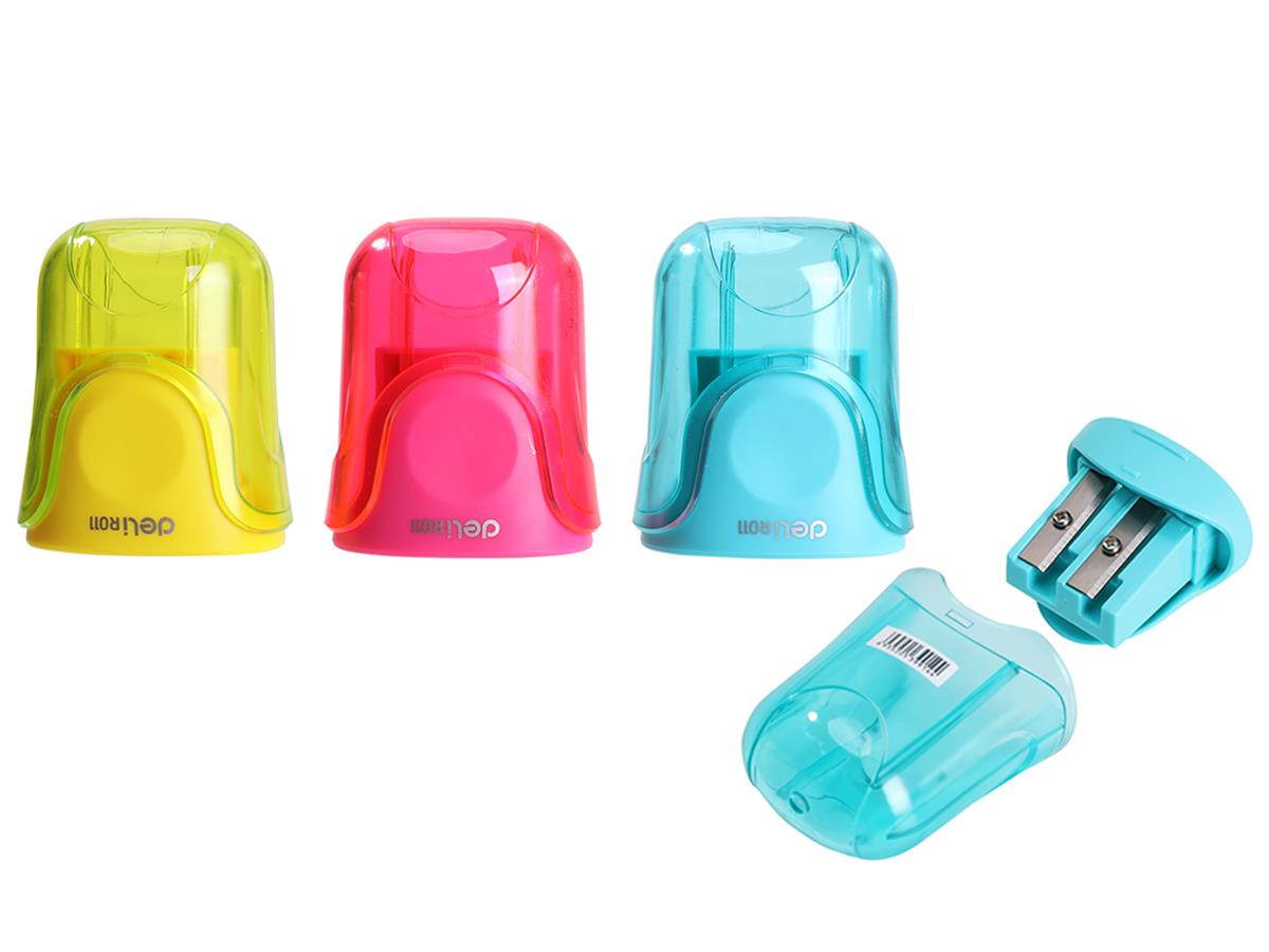 Deli Pencil Sharpener 2 Holes W/CANISTER Assorted Colors