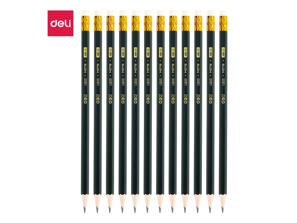 Deli Graphite Pencil HB With Eraser 12 Pencils