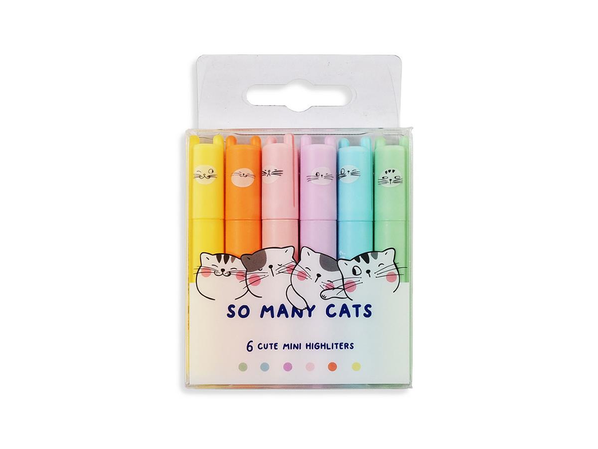 M&G Highlighter Pen Chisel Mini Set of 6 Pastel Colors So Many Cats