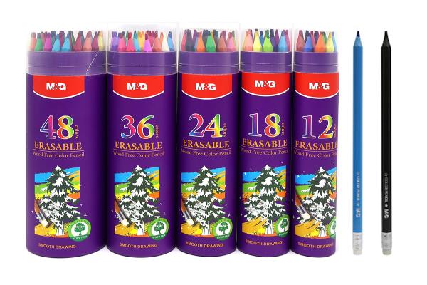 M&G Erasable Coloring Pencils Wood Free 24 Colors In Cartoon Tube