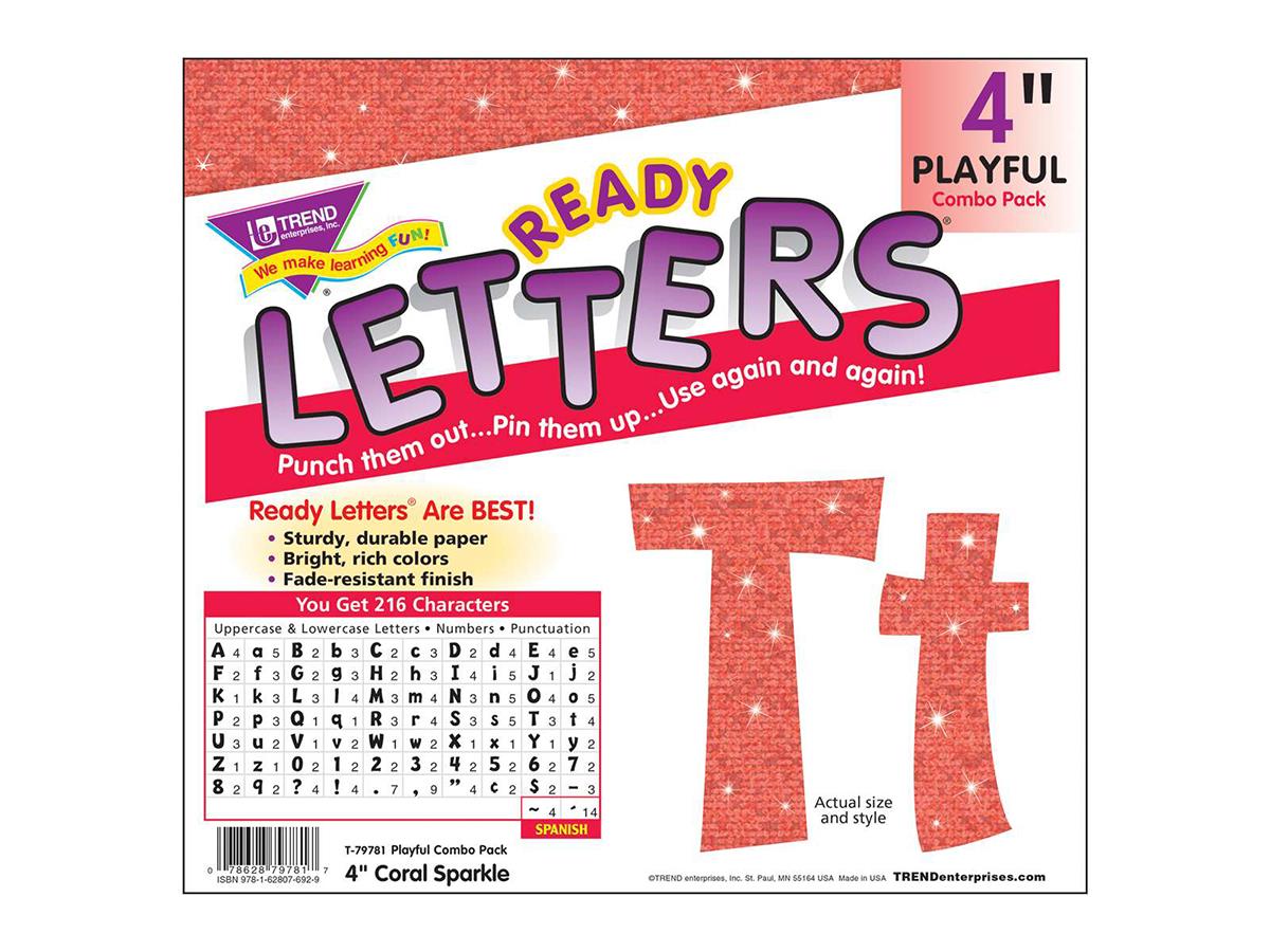 Trend Ready Letters Coral Sparkle 4inch Playful Combo