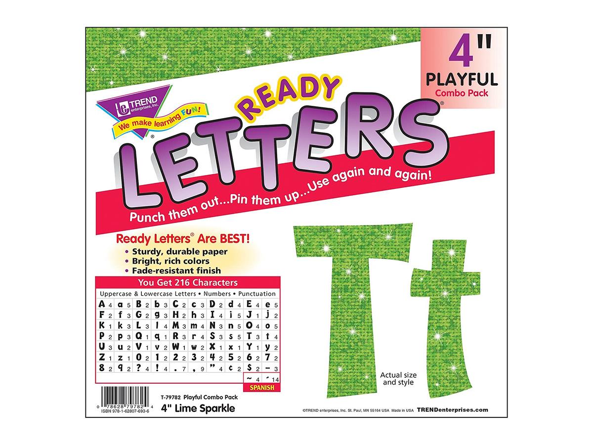 Trend Ready Letters Lime Sparkle 4inch Playful Combo