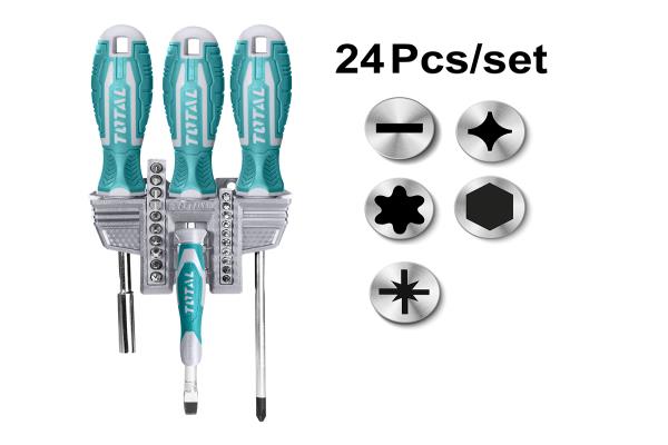 Total 24 pcs screwdriver and bits set24PCS طقم مفك براغي/مفك نواعم