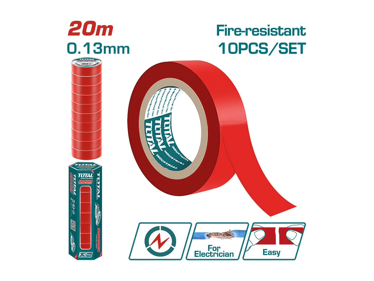 Total PVC insulating tape20M X 0.13MM شرتتون احمر