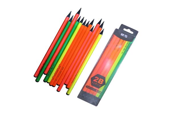 M&G Wooden Pencil 2B Black Wood Hex Neon Color 1 Pencil