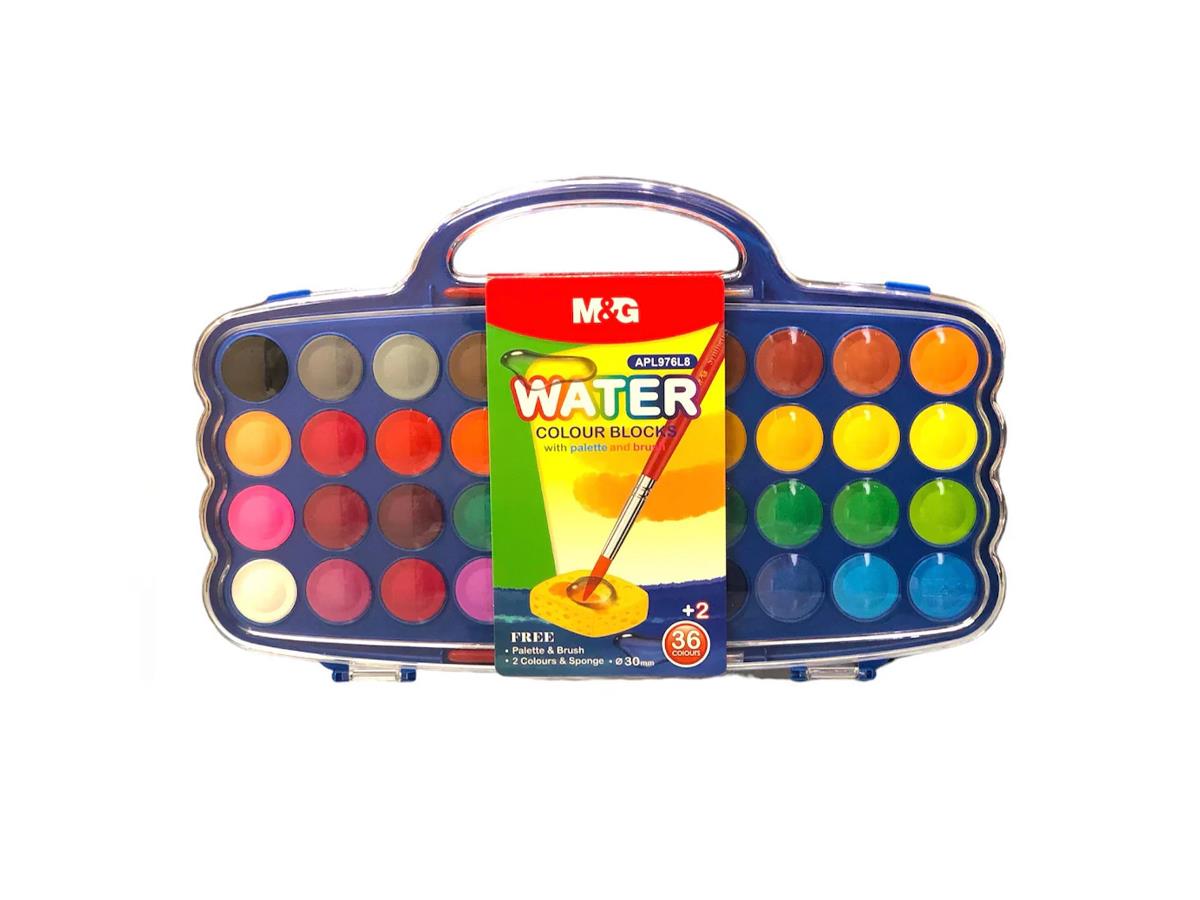 M&G Watercolor Blocks 36+2 Colors 30mm With Palette Sponge And Brush