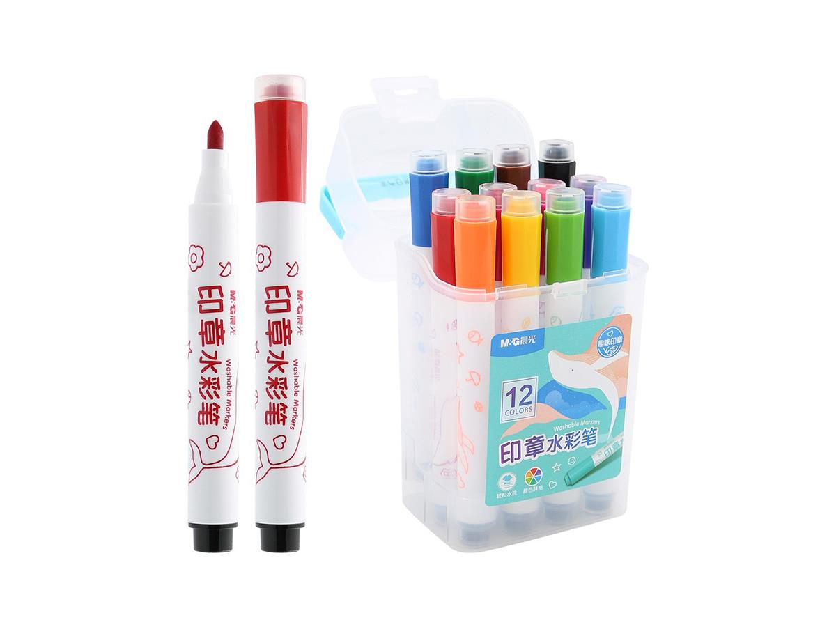 M&G Watercolor Pens With Stamp 12 Colors In Plastic Box