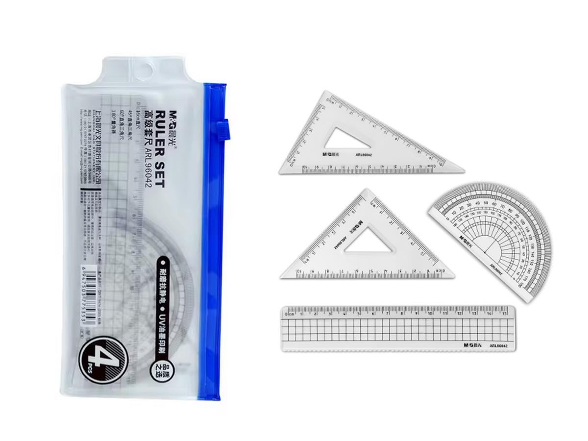 M&G Math Set Ruler 15cm Plastic Set Of 4Pcs/Pvc