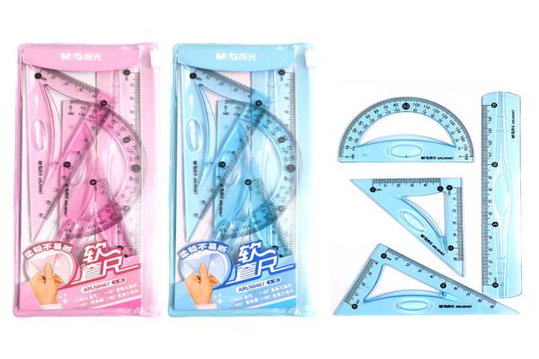 M&G Math Set Ruler 15Cm 4Pcs/Pvc Flexible Pink/Blue