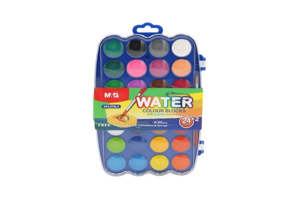 M&G Watercolor Blocks 24+2 Colors 30mm With Palette Sponge And Brush