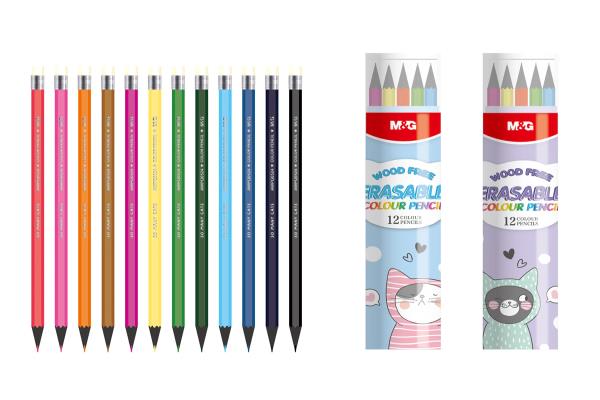M&G Coloring Pencils 12 Colors Wood Free in Carton Tube Q0524