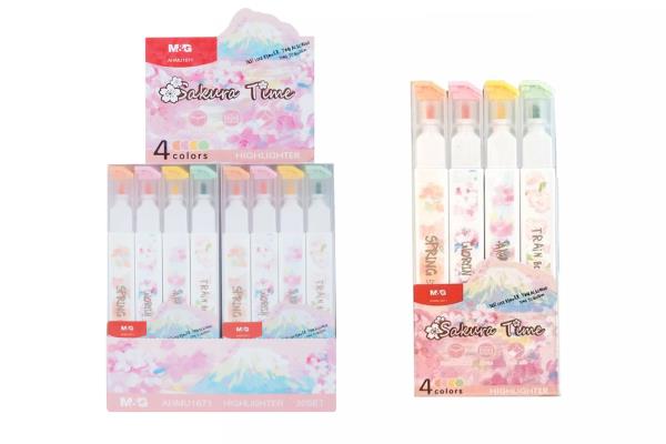 M&G Highlighter Pen Chisel Hi Cube Set of 4 Colors Sakura Time