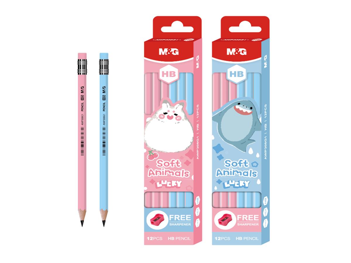 M&G Wooden Pencil With Eraser Hexagonal + Sharpener 12 Pencils