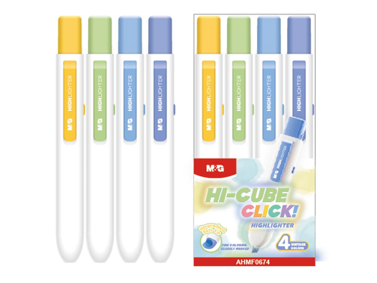 M&G Highlighter Pen Chisel Hi Cube Click Set Of 4 Color Vintage