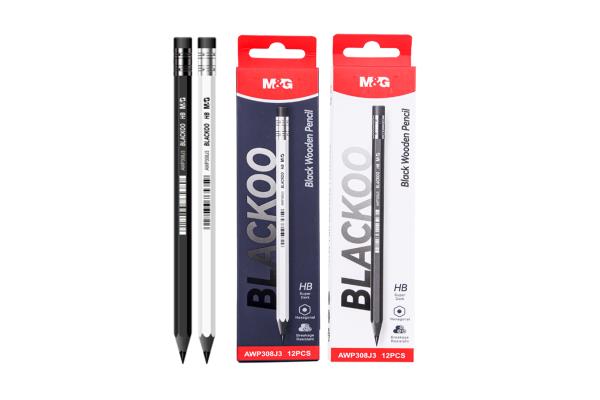 M&G Wooden Pencils Blackoo HB Hexagonal W Eraser Break Resistant 1 Dozen