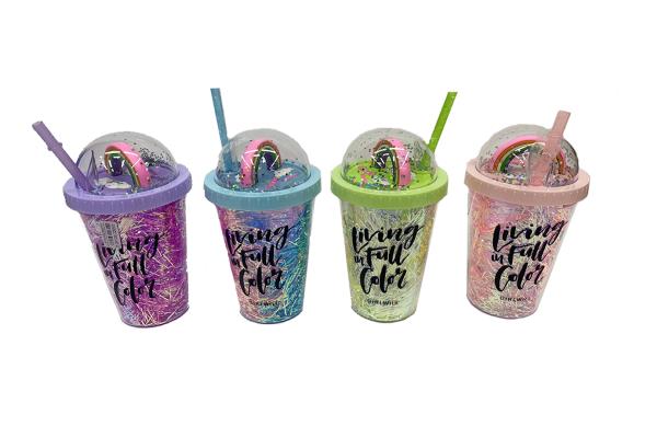 RYN Plastic Cup 450ml With Straw Rainbow 226555