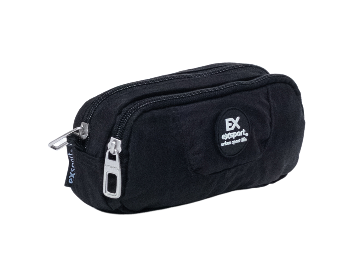 Exsport Pencil Case Crinkle 2 Compartments BLACK