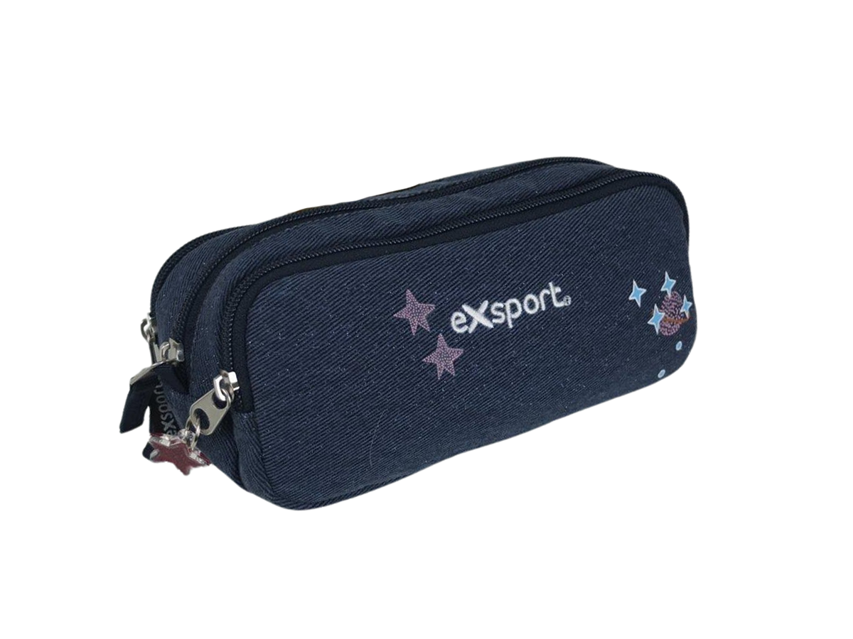 Exsport Pencil Case Jeans 3 Compartments PINK
