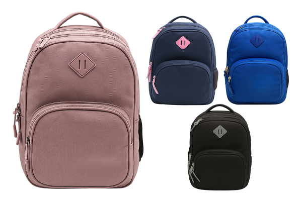 Exsport Backpack Plain W/Patch Multiple Compartments Assorted Colors