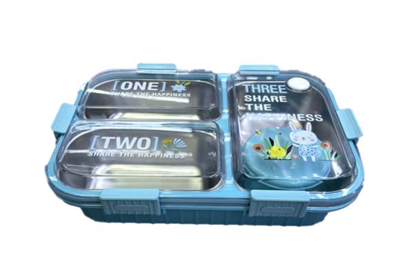 Lunch Box Plastic + Stainless Steel 22*16*7cm 3 Parts
