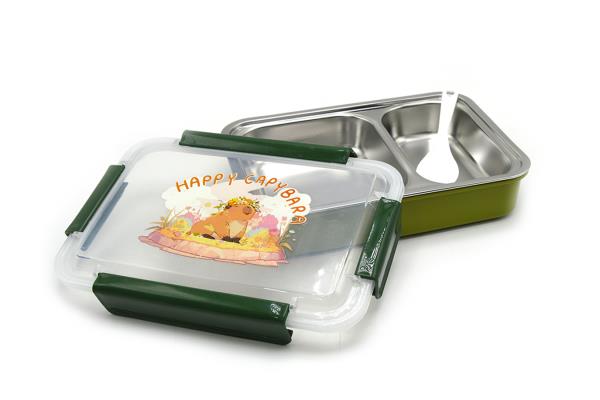 Lunch Box Stainless Steel 22*16*6.5cm 2 Parts W Spoon