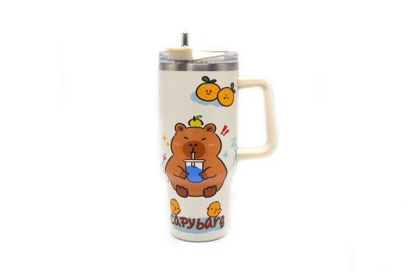 Thermos Cup Stainless Steel 304 1200ml With Handle And Straw