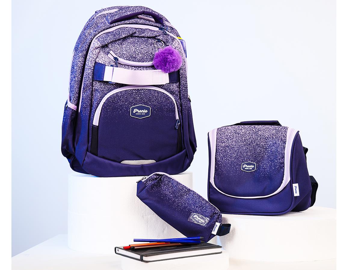 Pronto School Backpack 18 INCH W/lunch Bag & Pencil Case Purple