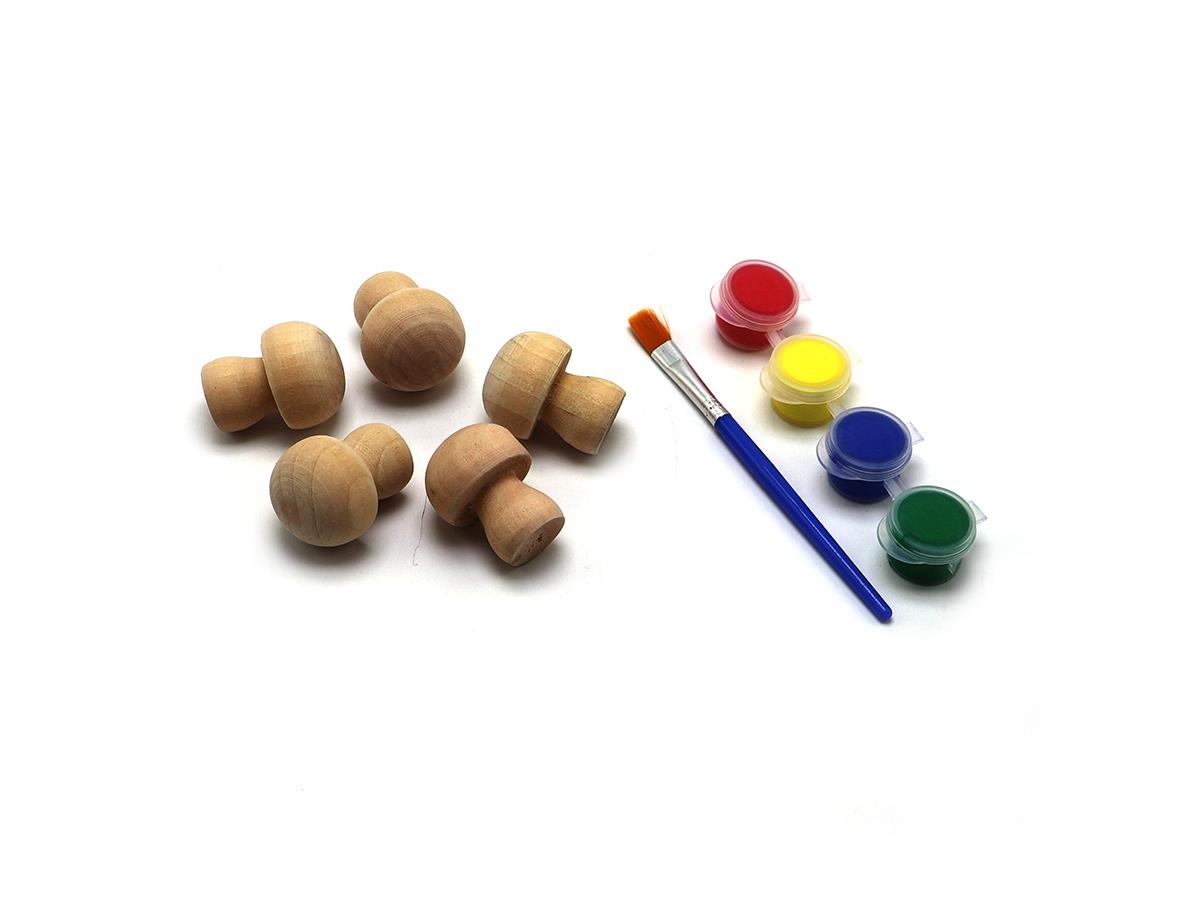 RYN Wooden Mushroom 5 Pcs W 4 Acrylic + 1 Brush