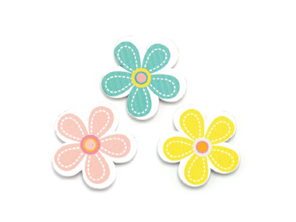 Flower 3.3Cm 15/Bag Yellow Pink Blue
