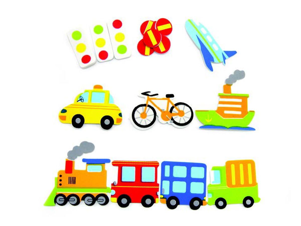 Adhesive Foam Shapes Colored Vehicles 39Pcs